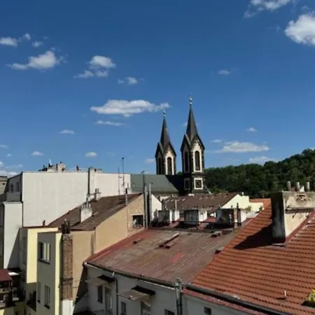 Cool Duplex With Terrace Near Florenc俯瞰着花园,仅需5分钟即可到达布拉格的Chapel of Saint Charles Borromeo in Karlin. 这家住宿距离克里斯科瓦地铁站步行约5分钟.住宿处有2间卧室,2间浴室和小厨房.